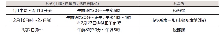 ※27日(金)は午前のみ。3月2日(月)以降は税務課で確定申告の相談や申告書作成はできません。