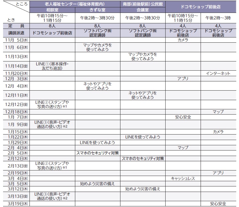 ※ソフトバンクのスマホ教室は、講座(1時間)+個別相談会(30分)となります。個別相談会では、日ごろの疑問などをお話しください(内容によって時間内に解決しない場合もあります)。