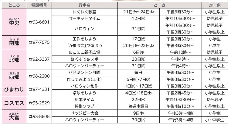 子育て 10月児童館の行事案内 32/46 前の記事 次の記事 発行日 : 2025年10月01日 自治体名 : 愛知県豊明市 広報紙名 : 広報とよあけ 令和7年10月1日号 ※変更または中止となる場合があります。開催の有無は、各児童館にご確認ください。 問合せ:子育て支援課児童係 【電話】0562-85-3950 Tweet シェアする 子どもの権利ってなに? Part6 イベント