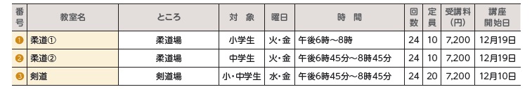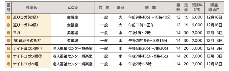 受講決定日:11月15日(土)~26日(水)午前9時~午後8時に福祉体育館にてお支払いください。支払期間中に手続きのない場合は当選無効となります。