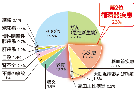 循環器疾患は、がんの次に多く、日本人の主な死亡原因の一つです。