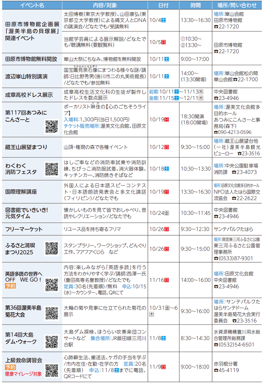 イベント 〔あそんで!まなんで!おでかけ情報〕一般向けイベント 27/47 前の記事 次の記事 発行日 : 2025年10月01日 自治体名 : 愛知県田原市 広報紙名 : 広報たはら 令和7年10月号 ※掲載したイベントなどは、中止、または延期する場合があります Tweet シェアする 〔あそんで!まなんで!おでかけ情報〕すくっとへ行こっと! 〔あそんで!まなんで!おでかけ情報〕ようこそ図書館へ