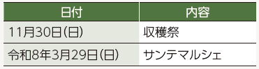 サンテパルクたはらでは、春に農業祭、秋には収穫祭、三月にはサンテマルシェのイベントを開催しています。