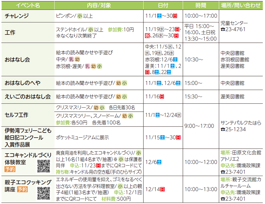 子育て 〔あそんで!まなんで!おでかけ情報〕キッズ向けイベント 24/50 前の記事 次の記事 発行日 : 2025年11月04日 自治体名 : 愛知県田原市 広報紙名 : 広報たはら 令和7年11月号 ※掲載したイベントなどは、中止、または延期する場合があります Tweet シェアする 田原市議会第4回定例会を開催 〔あそんで!まなんで!おでかけ情報〕子育てファミリー向けイベント