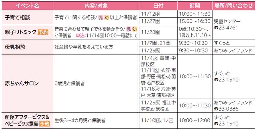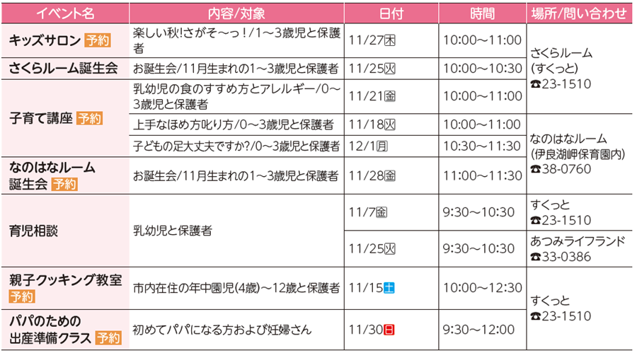子育て 〔あそんで!まなんで!おでかけ情報〕子育てファミリー向けイベント 25/50 前の記事 次の記事 発行日 : 2025年11月04日 自治体名 : 愛知県田原市 広報紙名 : 広報たはら 令和7年11月号 ※掲載したイベントなどは、中止、または延期する場合があります Tweet シェアする 〔あそんで!まなんで!おでかけ情報〕キッズ向けイベント 大草保育園 ハロウィーンおばけやしきだぞ~♪