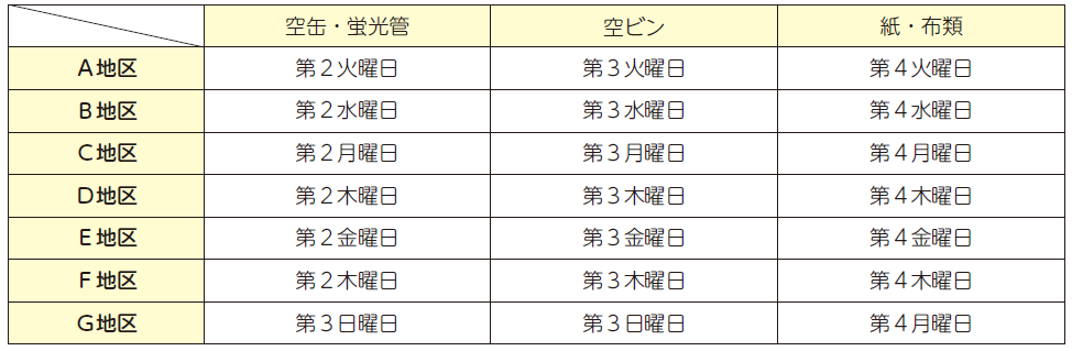 ■地区ごとの資源物収集日一覧