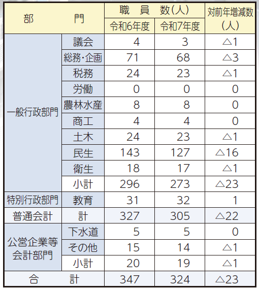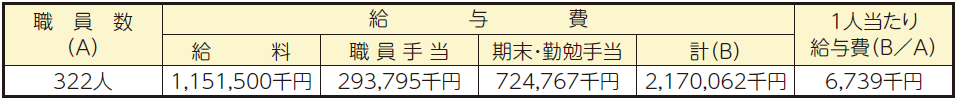 (注)職員数は、一般職に属する職員であり、地方公務員の身分を保有する休職者および派遣職員を含み、臨時または非常勤職員は除きます。