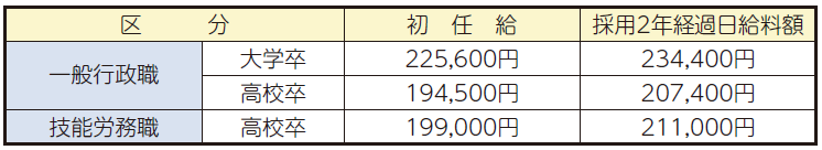 1.採用試験に合格し、学校卒業後直ちに採用された者の初任給と、その者が2年後に受けることとなる給料額について掲げたものです。