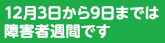 広く障がい者の福祉についての関心と理解を深め、障がい者が社会・経済・文化その他あらゆる分野の活動に積極的に参加する意欲を高めることを目的として、毎年12月3日から9日までを障害者週間と定めています。