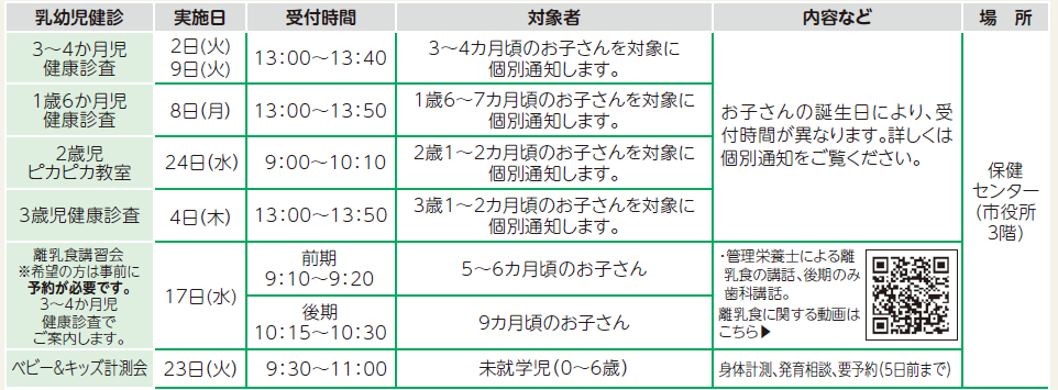 ※МR2期・日本脳炎2期・2種混合・ヒトパピローマウイルス感染症予防接種は対象の方へ個別通知をしています。