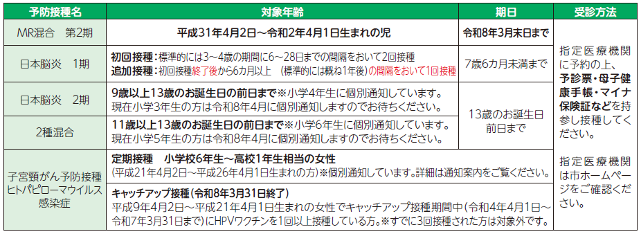 ※対象の方には予診票を郵送しています。紛失された方や転入の方は、母子健康手帳を持参の上、市役所健康推進課までお越しください。