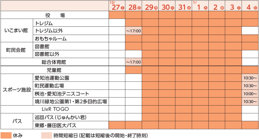 くらし 役場などの年末年始の業務案内 7/42 前の記事 次の記事 発行日 : 2025年12月01日 自治体名 : 愛知県東郷町 広報紙名 : 広報とうごう 2025年12月号 Tweet シェアする 東郷町制施行55周年記念 第31回東郷町民レガッタ 結果一覧 12月のマイナンバーカード休日夜間対応窓口および諸証明休日発行窓口