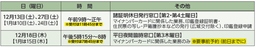 ※窓口の混雑が予想されるので、可能な人は、平日開庁時間中の窓口をご利用ください。