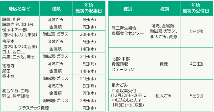 くらし 年始のごみ収集などは下記のとおりです。ご注意ください。 39/42 前の記事 次の記事 発行日 : 2026年01月01日 自治体名 : 愛知県東郷町 広報紙名 : 広報とうごう 2026年1月号 Tweet シェアする 町指定ごみ袋への広告を募集します 情報PICK UP-環境インフォメーション