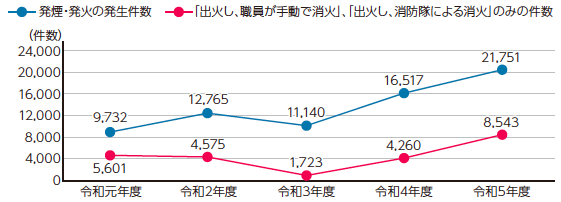 ◇ごみ収集車やごみ処理施設における火災事故などの発生件数推移