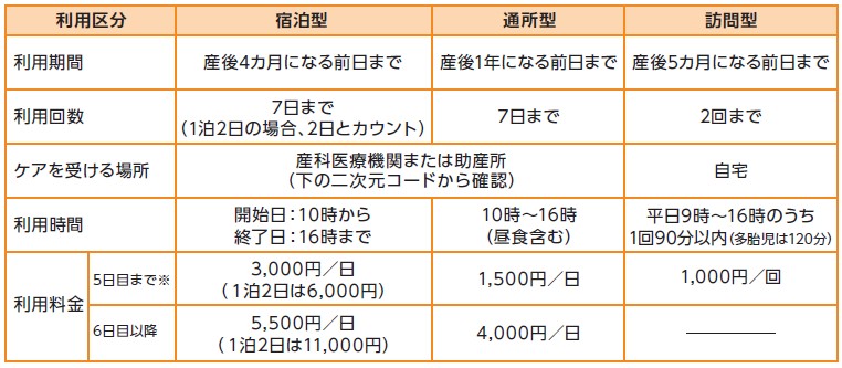 心身のケア、育児相談、授乳および沐浴などの指導、育児手技指導、休眠休息の時間の確保、食事の提供