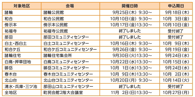 ※各地区開催と町民会館開催のどちらか1回のみの参加とします。