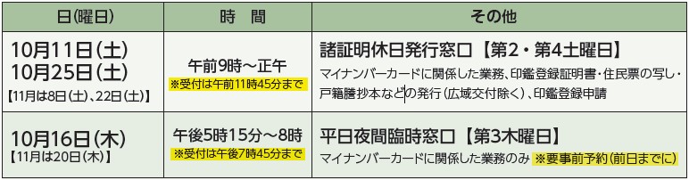 ※転入・転出の届出などの業務は行いません。詳しくは、住民課へお問い合わせください。