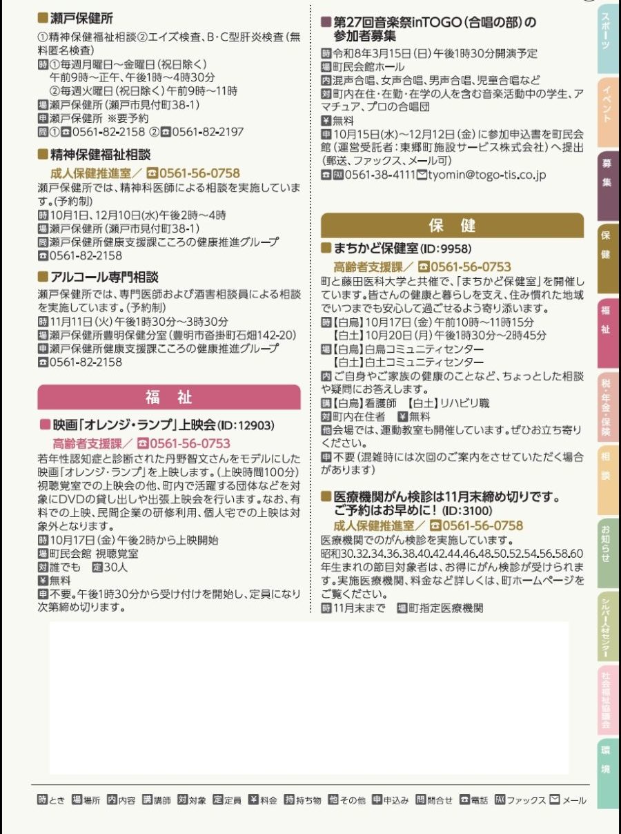健康 情報PICK UP(4)-募集・保健・福祉 29/38 前の記事 次の記事 発行日 : 2025年10月01日 自治体名 : 愛知県東郷町 広報紙名 : 広報とうごう 2025年10月号 Tweet シェアする 情報PICK UP(3)-募集 情報PICK UP(5)-福祉