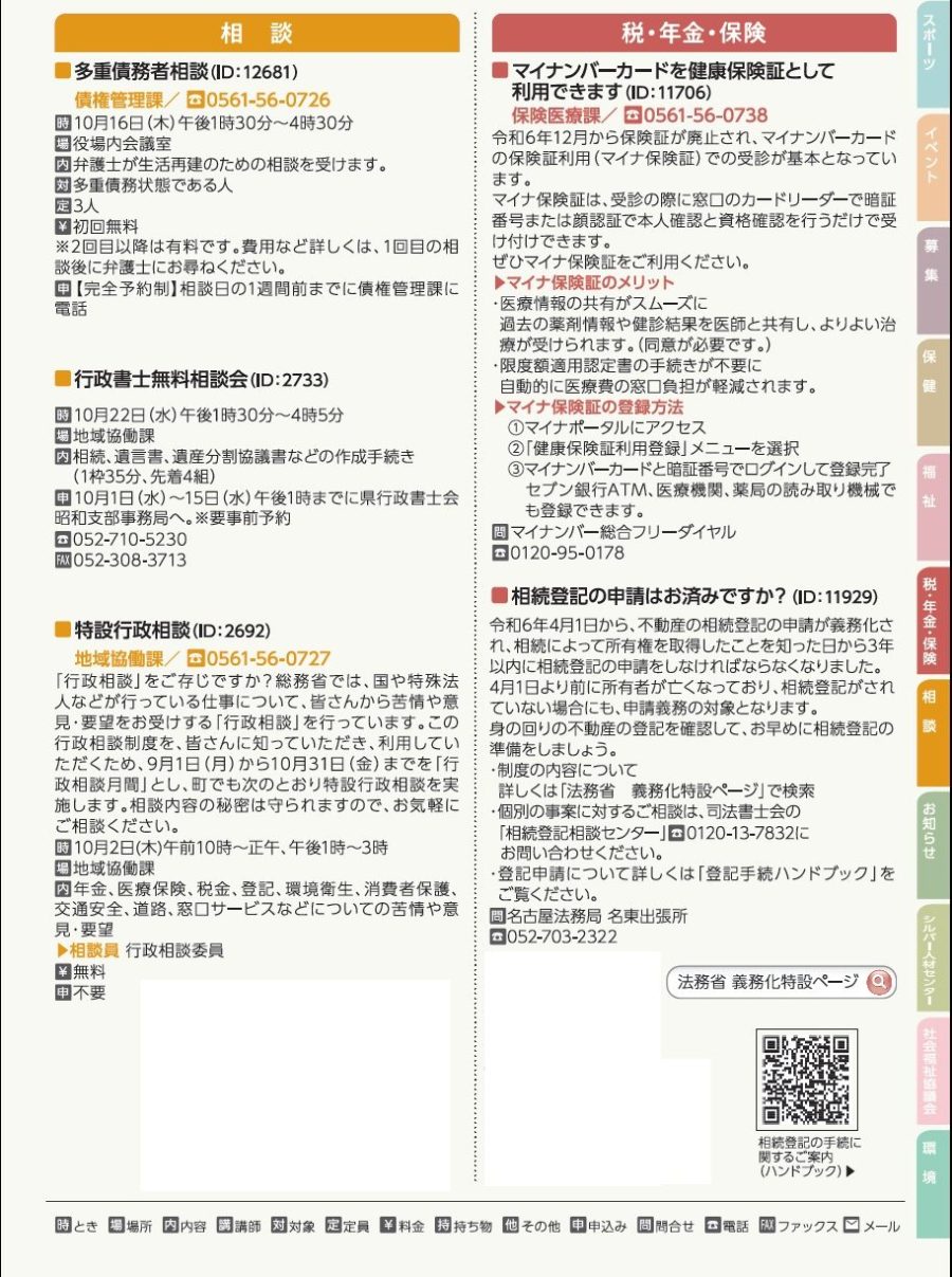 くらし 情報PICK UP(6)-税・年金・保険・相談 31/38 前の記事 次の記事 発行日 : 2025年10月01日 自治体名 : 愛知県東郷町 広報紙名 : 広報とうごう 2025年10月号 Tweet シェアする 情報PICK UP(5)-福祉 情報PICK UP(7)-お知らせ