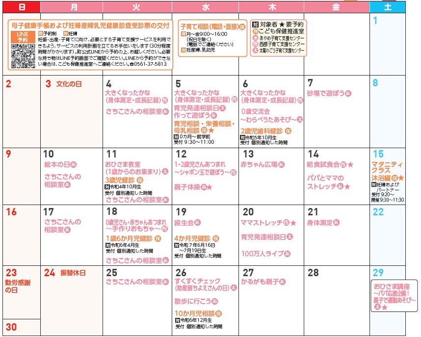 ・いっしょにあそぼ※ 6日(木)芋堀り 13日(木)うごいてあそぼ 27日(木)消防車見学