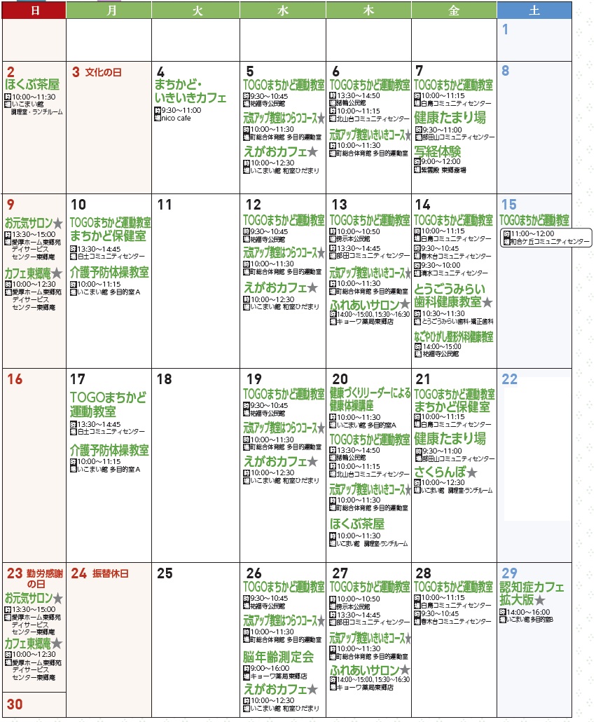 くらし シニアいきいきガイド(1)11月のイベント 21/39 前の記事 次の記事 発行日 : 2025年11月01日 自治体名 : 愛知県東郷町 広報紙名 : 広報とうごう 2025年11月号 ★…要予約 Tweet シェアする 困りごと・悩みごとは、まず相談窓口へ(2) シニアいきいきガイド(2)
