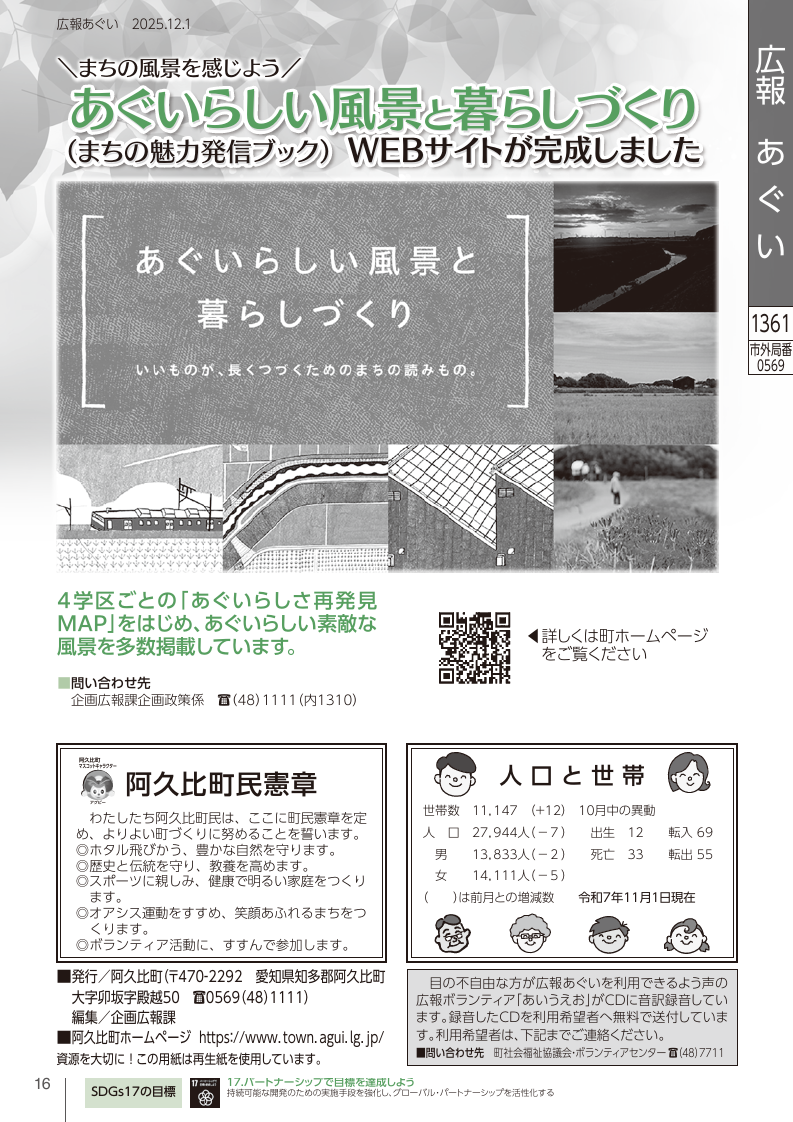 くらし 広報あぐい 2025年12月1日号 P.16 16/16 前の記事 発行日 : 2025年12月01日 自治体名 : 愛知県阿久比町 広報紙名 : 広報あぐい 2025年12月1日号 Tweet シェアする 広報あぐい 2025年12月1日号 P.15
