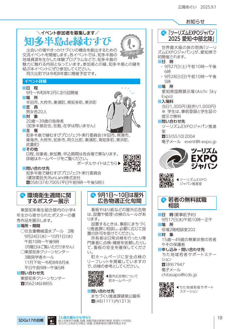くらし 広報あぐい 2025年9月1日号 P.19 19/22 前の記事 次の記事 発行日 : 2025年09月01日 自治体名 : 愛知県阿久比町 広報紙名 : 広報あぐい 2025年9月1日号 Tweet シェアする 広報あぐい 2025年9月1日号 P.18 広報あぐい 2025年9月1日号 P.20