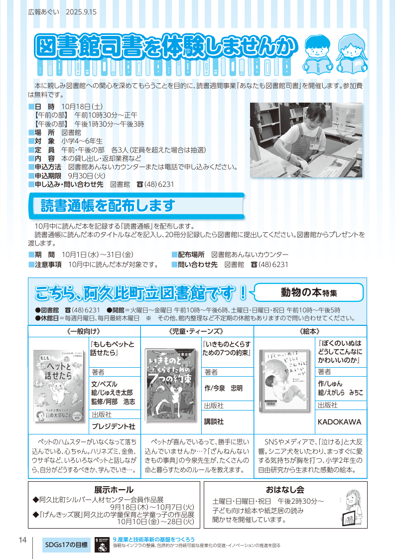 子育て 広報あぐい 2025年9月15日号 P.14 14/22 前の記事 次の記事 発行日 : 2025年09月15日 自治体名 : 愛知県阿久比町 広報紙名 : 広報あぐい 2025年9月15日号 Tweet シェアする 広報あぐい 2025年9月15日号 P.13 広報あぐい 2025年9月15日号 P.15