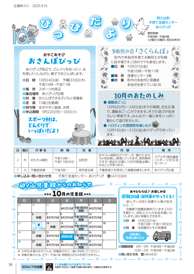 子育て 広報あぐい 2025年9月15日号 P.16 16/22 前の記事 次の記事 発行日 : 2025年09月15日 自治体名 : 愛知県阿久比町 広報紙名 : 広報あぐい 2025年9月15日号 Tweet シェアする 広報あぐい 2025年9月15日号 P.15 広報あぐい 2025年9月15日号 P.17