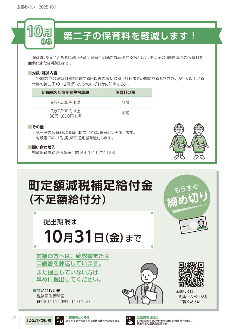 子育て 広報あぐい 2025年10月1日号 P.02 2/14 前の記事 次の記事 発行日 : 2025年10月01日 自治体名 : 愛知県阿久比町 広報紙名 : 広報あぐい 2025年10月1日号 Tweet シェアする 広報あぐい 2025年10月1日号 P.01 広報あぐい 2025年10月1日号 P.03