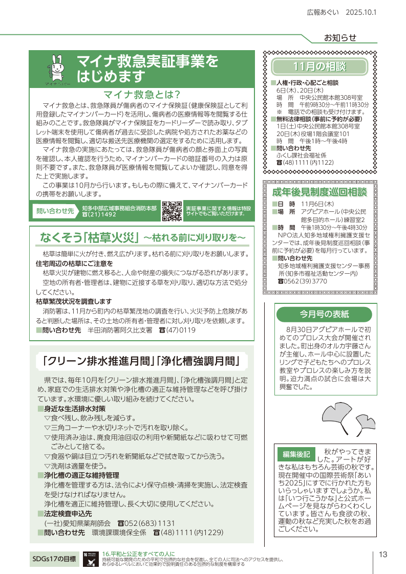 くらし 広報あぐい 2025年10月1日号 P.13 13/14 前の記事 次の記事 発行日 : 2025年10月01日 自治体名 : 愛知県阿久比町 広報紙名 : 広報あぐい 2025年10月1日号 Tweet シェアする 広報あぐい 2025年10月1日号 P.12 広報あぐい 2025年10月1日号 P.14