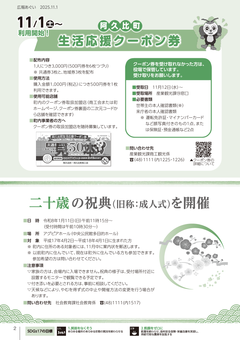 くらし 広報あぐい 2025年11月1日号 P.02 2/14 前の記事 次の記事 発行日 : 2025年11月01日 自治体名 : 愛知県阿久比町 広報紙名 : 広報あぐい 2025年11月1日号 Tweet シェアする 広報あぐい 2025年11月1日号 P.01 広報あぐい 2025年11月1日号 P.03