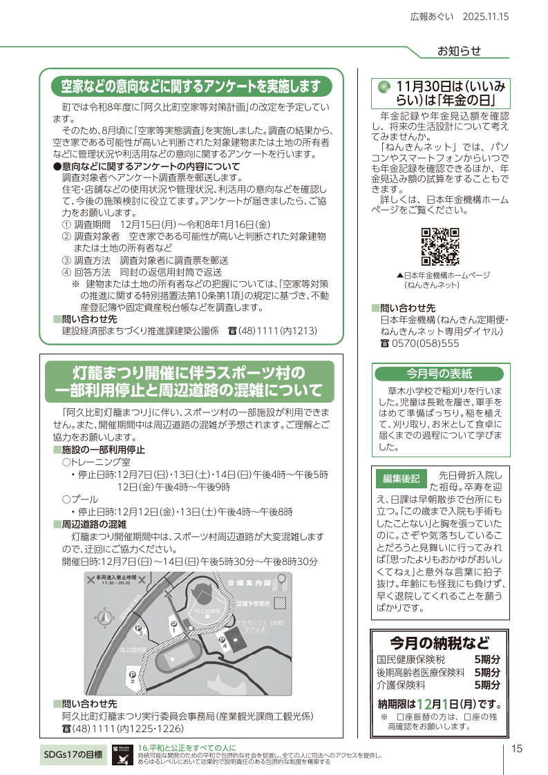 くらし 広報あぐい 2025年11月15日号 P.15 15/16 前の記事 次の記事 発行日 : 2025年11月15日 自治体名 : 愛知県阿久比町 広報紙名 : 広報あぐい 2025年11月15日号 Tweet シェアする 広報あぐい 2025年11月15日号 P.14 広報あぐい 2025年11月15日号 P.16