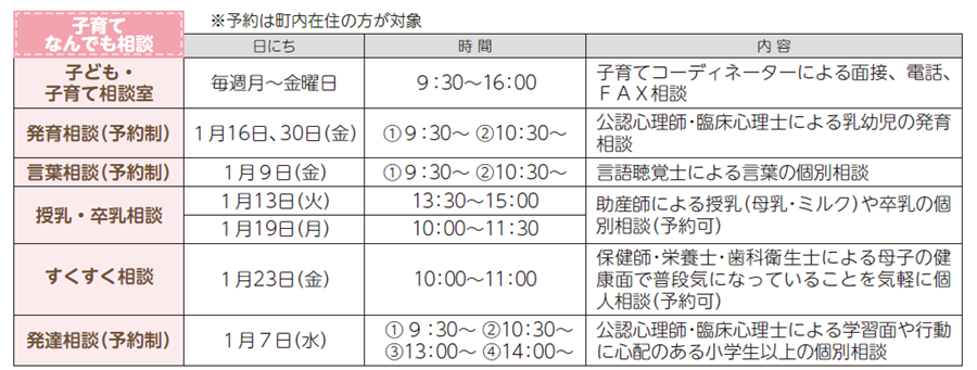 対象:町内在住で2025年4月~6月生まれの子どもとその保護者