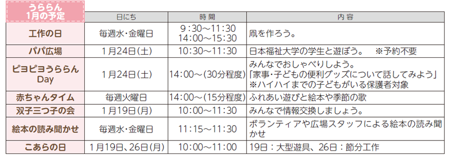■うららん1月の予定