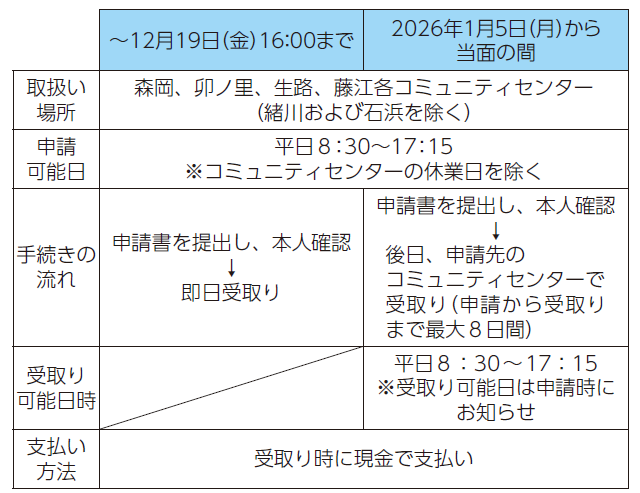 ※12月22日(月)~26日(金)は、申請・受取りはできません。