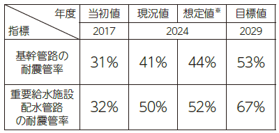 基幹管路の耐震管率および重要給水施設配水管路の耐震管率