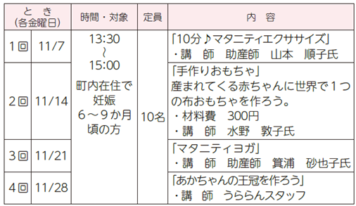 ■マタニティサロン(ウェルカムベビー)~赤ちゃんを迎えるための準備講座~[全4回]
