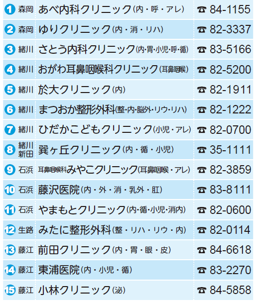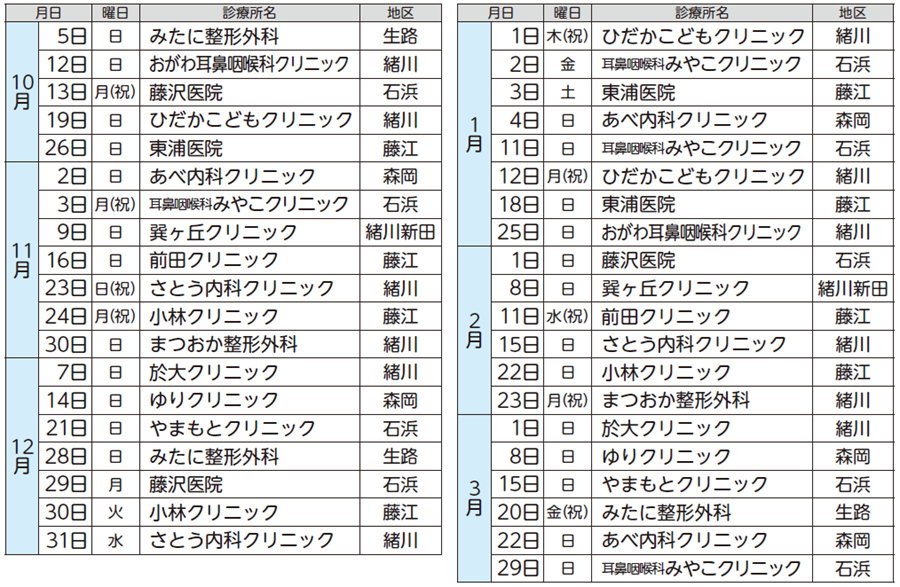 町内各医師のご協力により、休日急病患者のために輪番制で診察を行っていただいています。