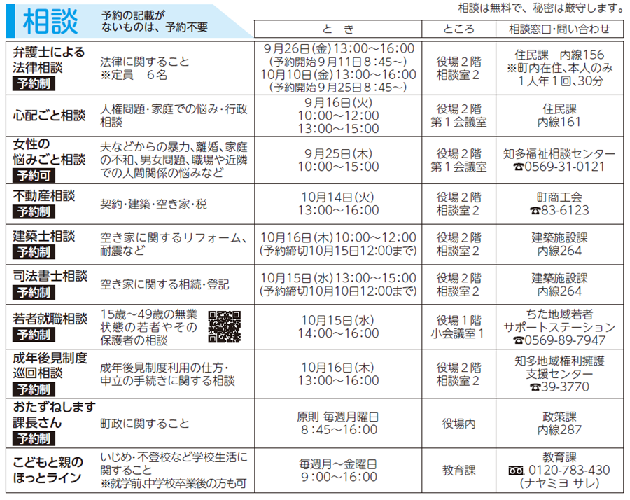 くらし 相談 18/69 前の記事 次の記事 発行日 : 2025年09月01日 自治体名 : 愛知県東浦町 広報紙名 : 広報ひがしうら 令和7年9月号 予約の記載がないものは、予約不要 相談は無料で、秘密は厳守します。 Tweet シェアする くらしの情報~教室・講座 ご寄付をいただきありがとうございます(敬称略)