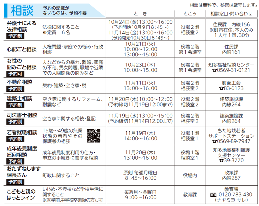 くらし 相談 20/65 前の記事 次の記事 発行日 : 2025年10月01日 自治体名 : 愛知県東浦町 広報紙名 : 広報ひがしうら 令和7年10月号 予約の記載がないものは、予約不要 相談は無料で、秘密は厳守します。 Tweet シェアする くらしの情報~教室・講座(2) 〔11月〕資源ごみ回収・し尿収集