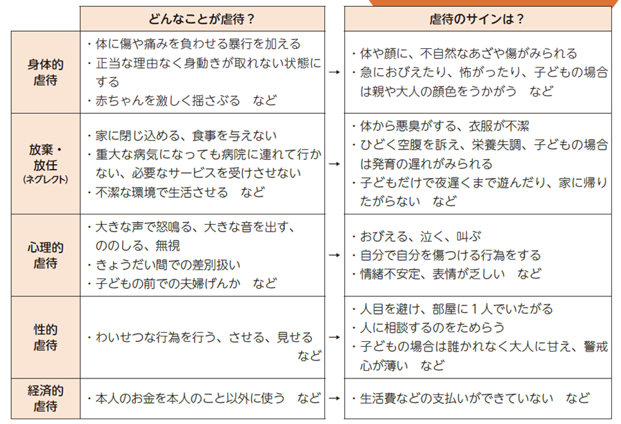 虐待は子どもに限らず、高齢者や障がい者にとっても、社会全体で解決すべき重要な課題です。そのためには、皆さんの理解を深めていくことが大切です。