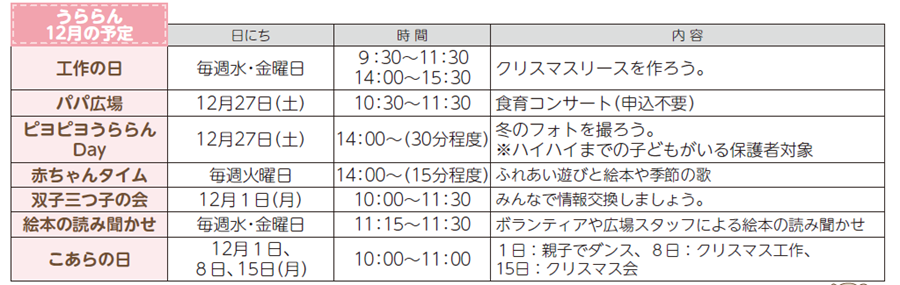 ■うららん12月の予定