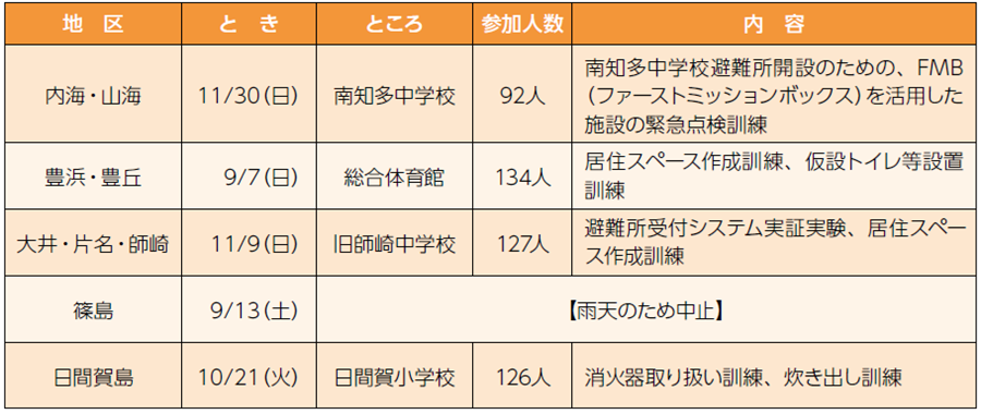 ※その他に、各地区の自主防災組織が避難訓練を行っております。ぜひ、ご参加ください。
