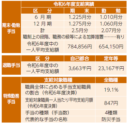 (注)職員一人当たり支給年額は、令和6年度決算額を令和6年4月1日現在の職員数(管理職手当受給職員を除く。)で除して算出した金額です。