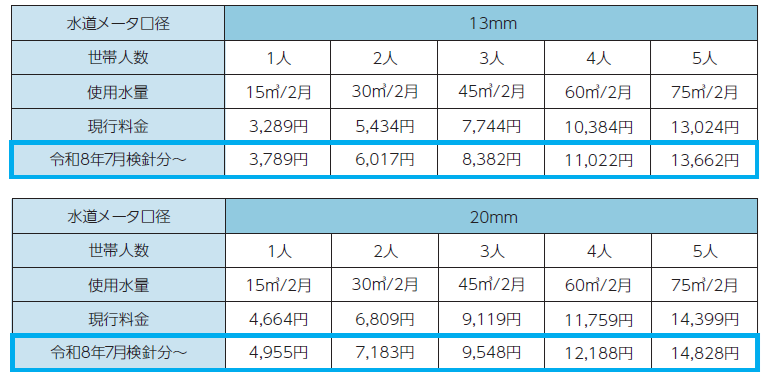 ※令和8年5月1日以降に開栓されたお客様は、改定後の料金になります。