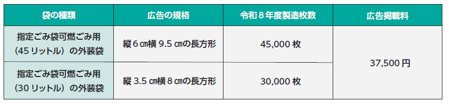 (1)広告の応募単位…45リットルと30リットルの各1枠を組み合わせたものを1組とします。広告のデザインは同一のものを使用します。