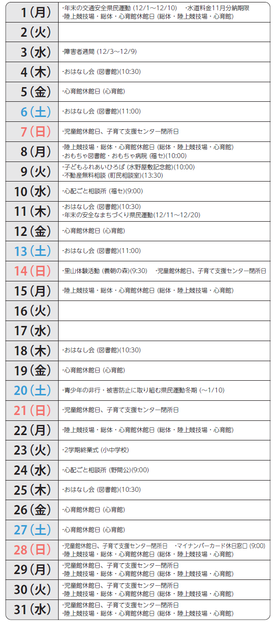 くらし 2025行事 Calendar 12月 40/49 前の記事 次の記事 発行日 : 2025年12月01日 自治体名 : 愛知県美浜町 広報紙名 : 広報みはま 令和7年12月号 No.1002 Tweet シェアする 暮らしの情報ひろば-3 心配ごと相談所