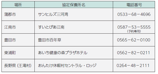 (1)協定保養所へ「愛知県後期高齢者医療の被保険者」と伝え、宿泊の予約をしてください。